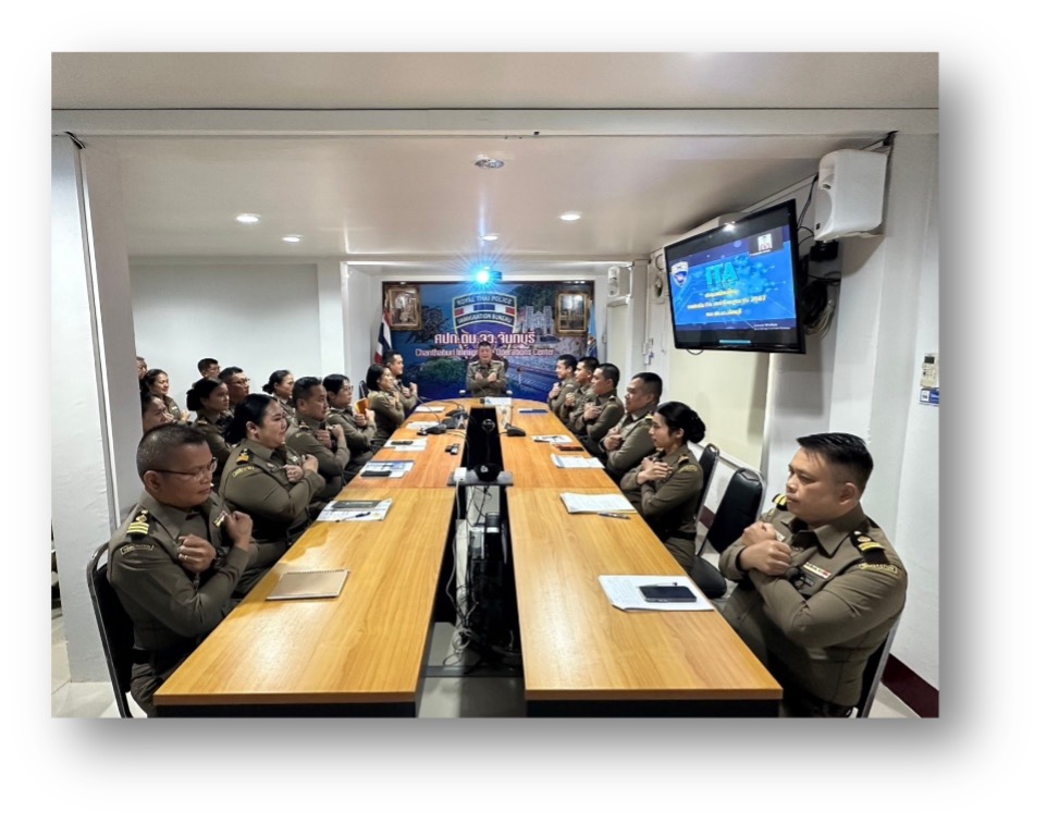 พ.ต.อ.วีรยศ การุณยธร รอง ผบก.ตม.2 รรท.ผกก.ตม.จว.จันทบุรี ได้ประชุมแต่งตั้งคณะทำงานและชี้แจงรายละเอียด การประเมินคุณธรรม และความโปร่งใสในการดำเนินงานของหน่วยงานภาครัฐ (ITA) ถ่ายทอดนโยบายและภารกิจให้แก่ข้าราชการตำรวจตรวจคนเข้าเมืองจังหวัดจันทบุรี ณ ห้องประชุม ศปก.ตม.จว.จันทบุรี ต.ทับไทร อ.โป่งน้ำร้อน จ.จันทบุรี