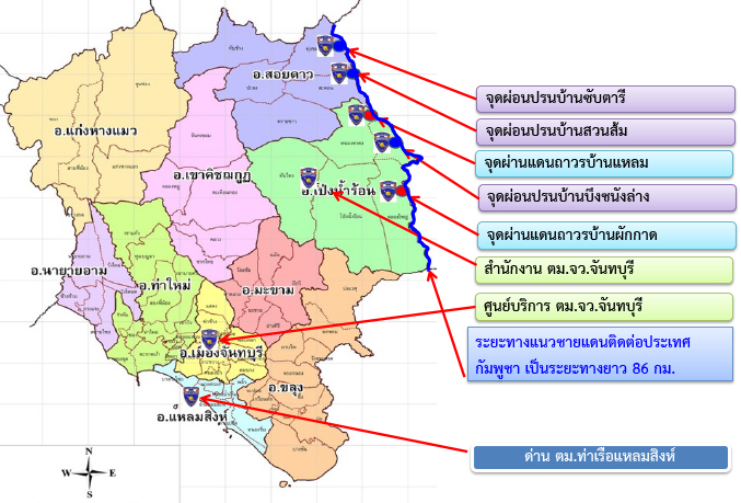 แผนที่เขตรับผิดชอบ ตรวจคนเข้าเมืองจังหวัดจันทบุรี