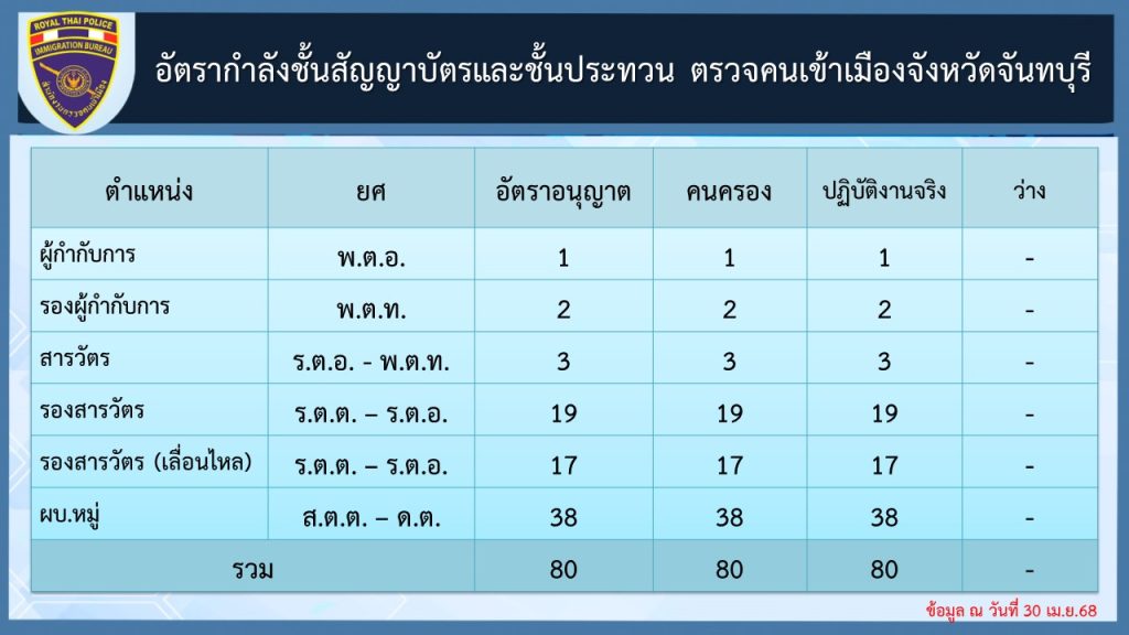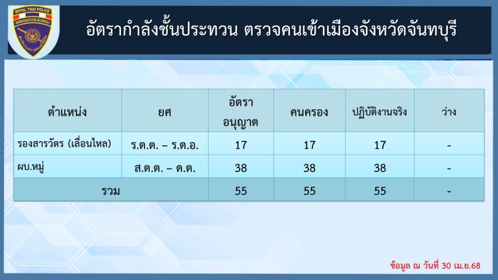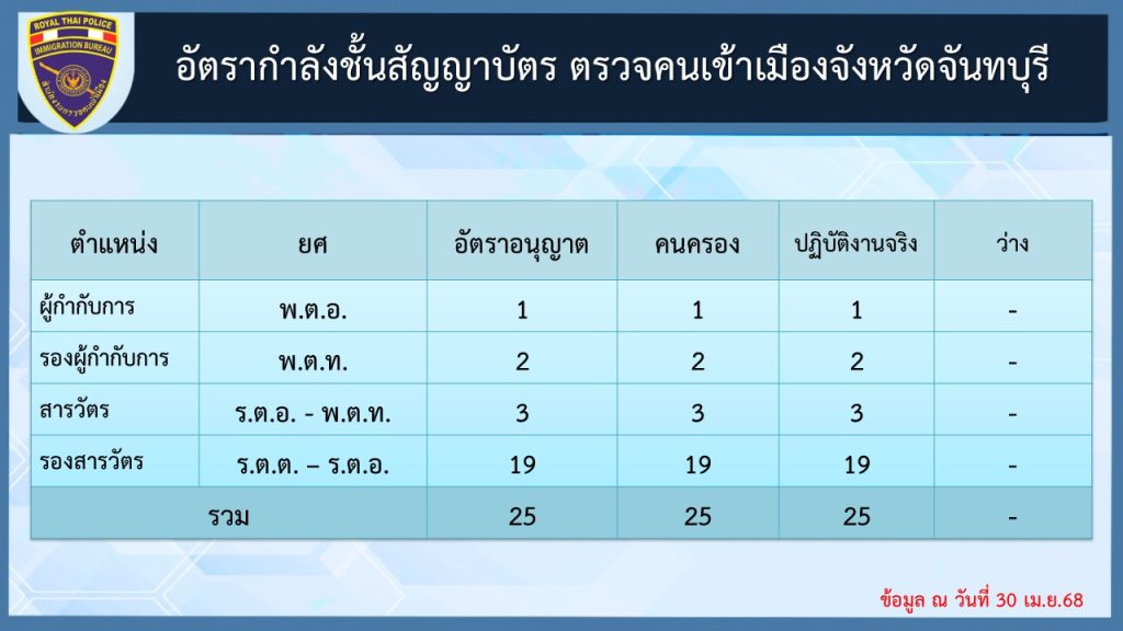 ข้อมูล ณ วันที่ 30 เมษายน 2568