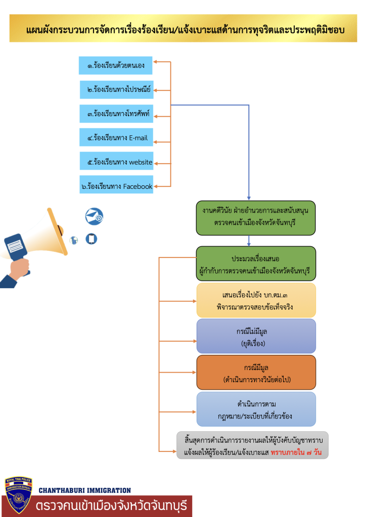 ช่องทางการแจ้งเรื่องร้องเรียนการทุจริตของตรวจคนเข้าเมืองจังหวัดจันทบุรี