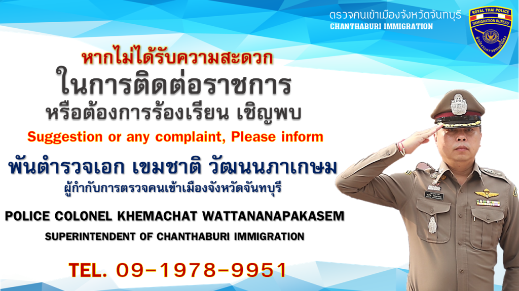 - 📮 By post, by making complaint letter of the Chanthaburi Immigration