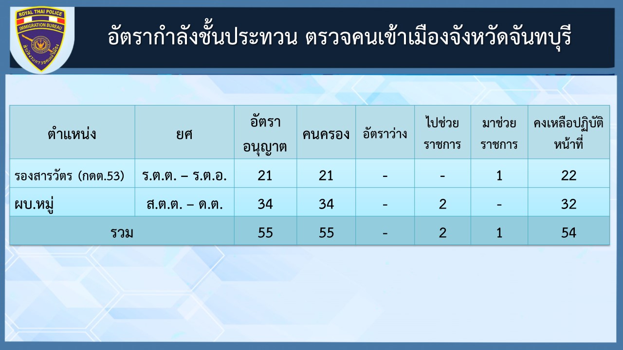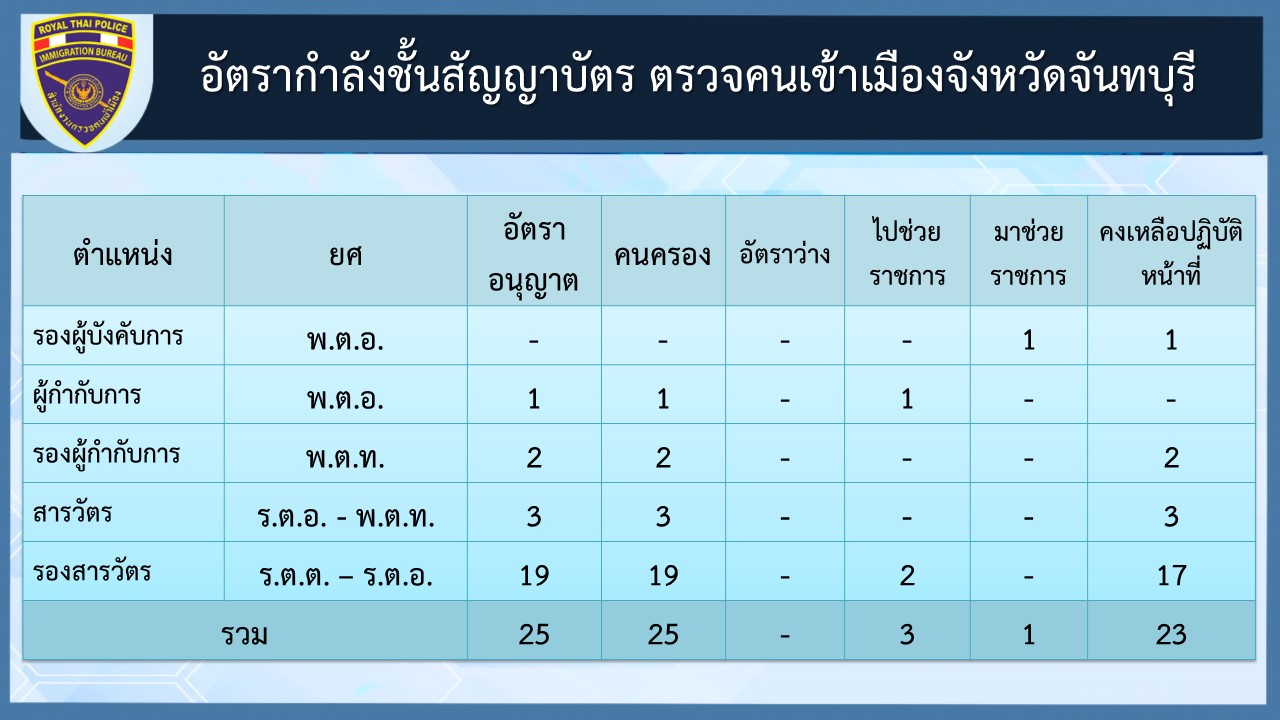 อัตรากำลังพล ตม.จว.จันทบุรี